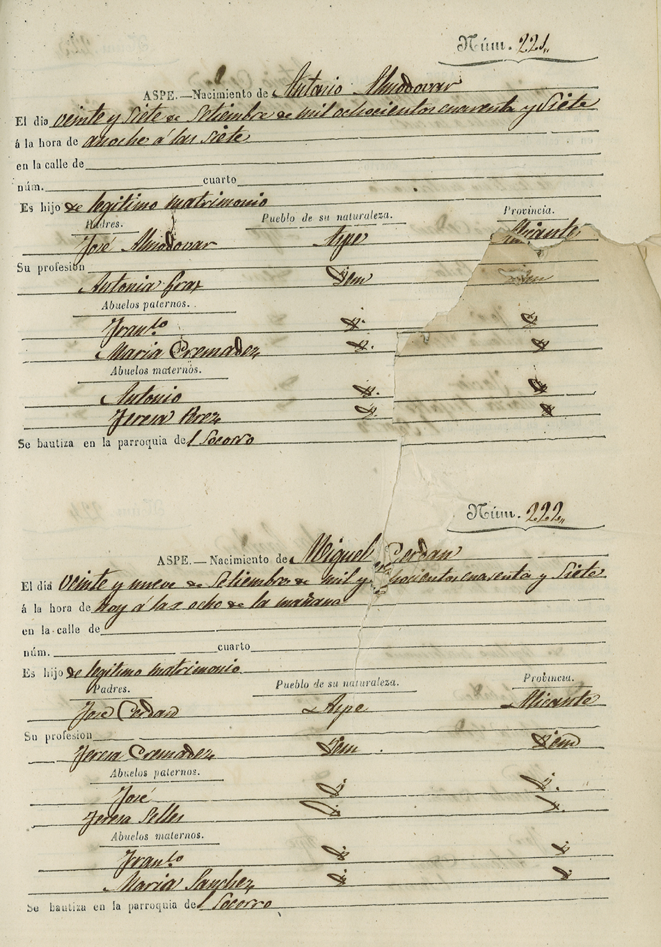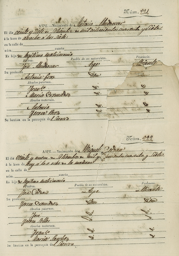 Registro civil de nacidos de la Villa de Aspe