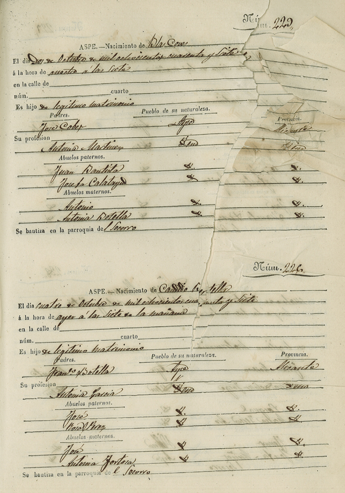 Registro civil de nacidos de la Villa de Aspe