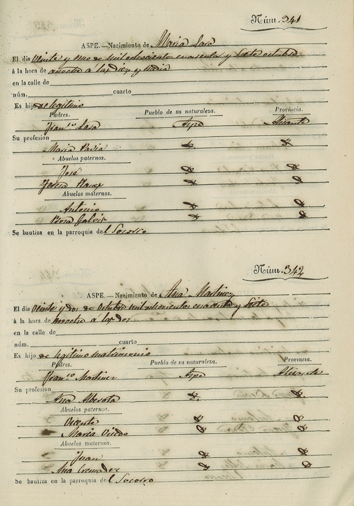 Registro civil de nacidos de la Villa de Aspe