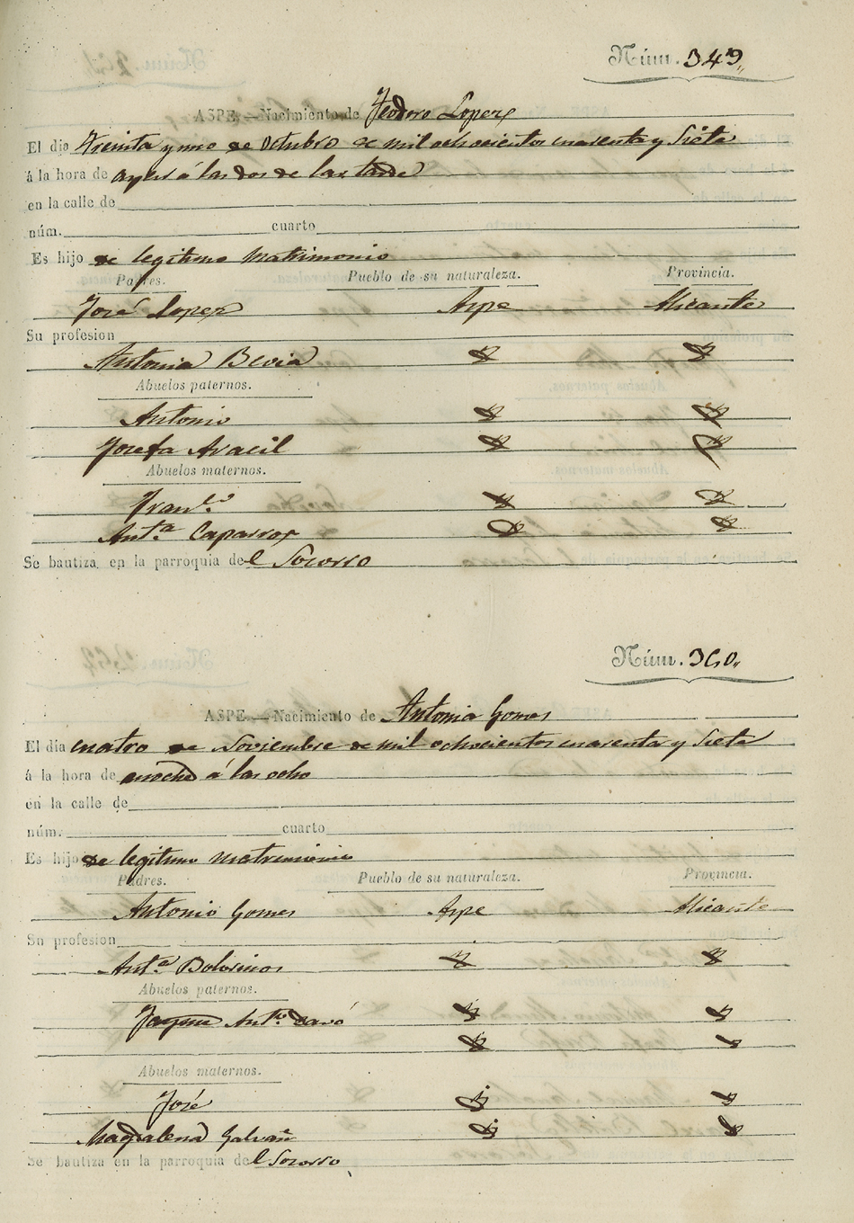 Registro civil de nacidos de la Villa de Aspe