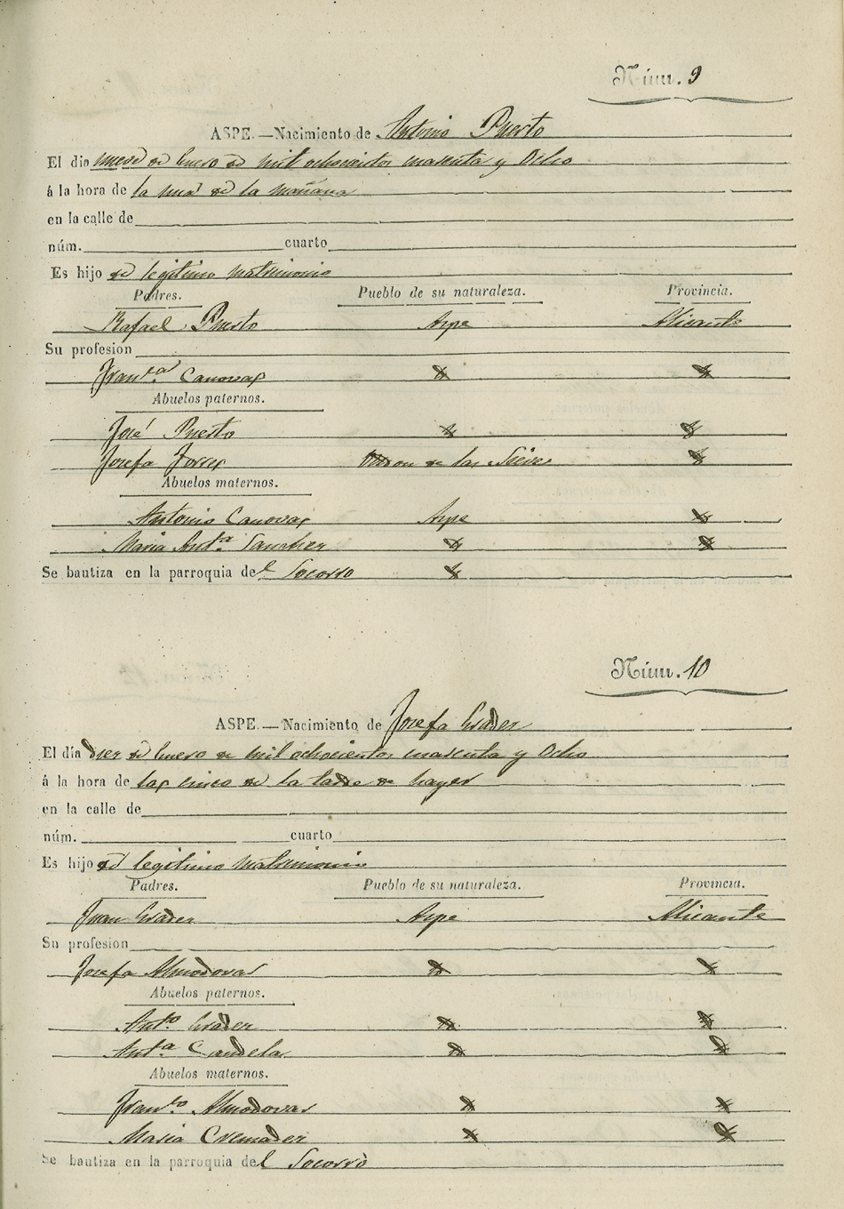 Registro civil de nacidos de la Villa de Aspe