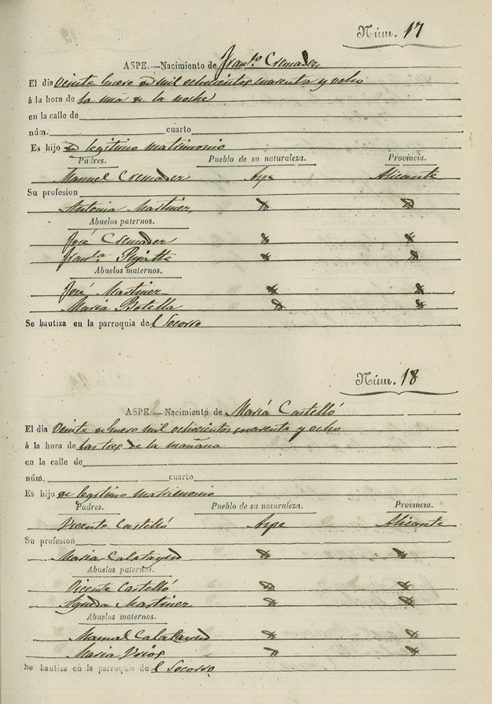 Registro civil de nacidos de la Villa de Aspe