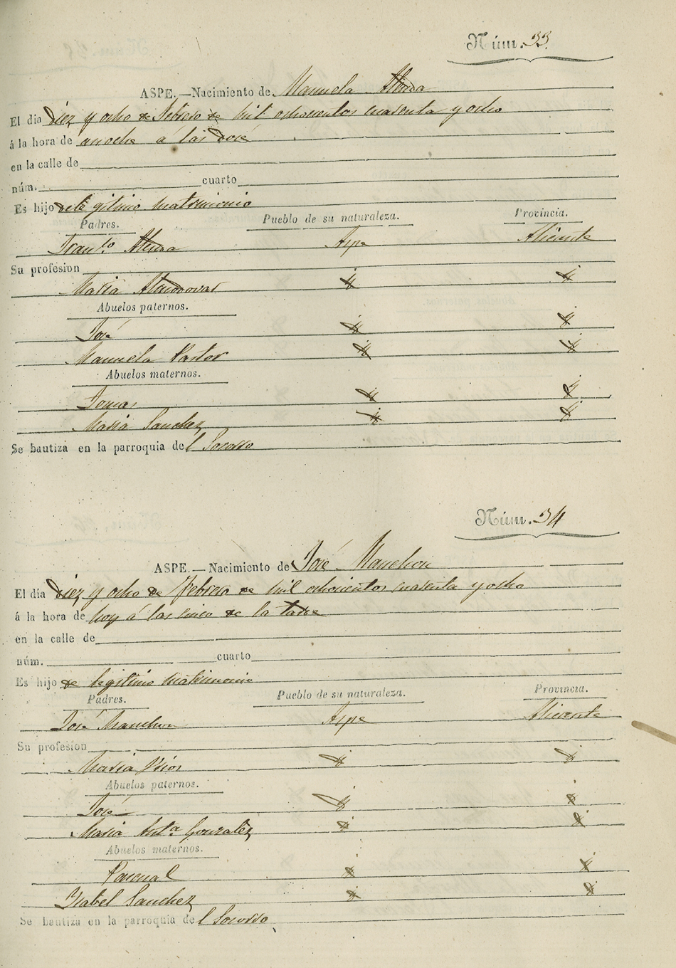 Registro civil de nacidos de la Villa de Aspe