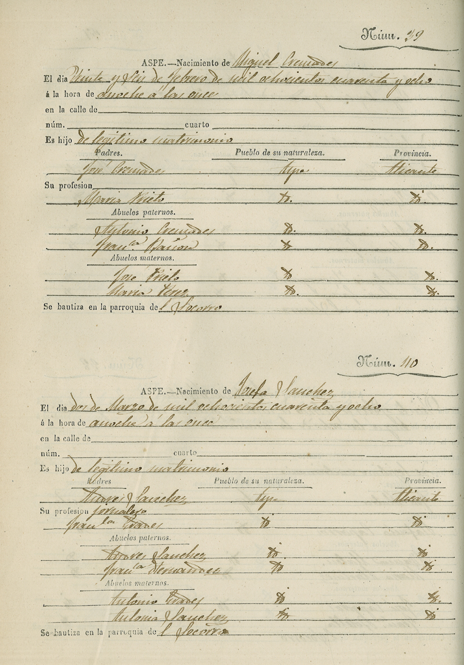 Registro civil de nacidos de la Villa de Aspe