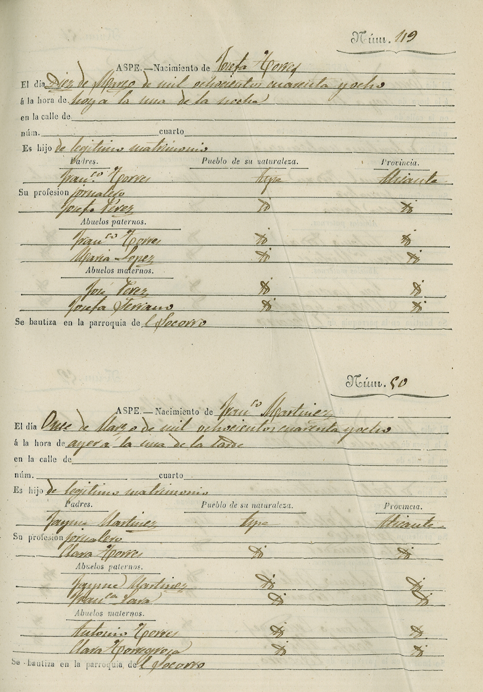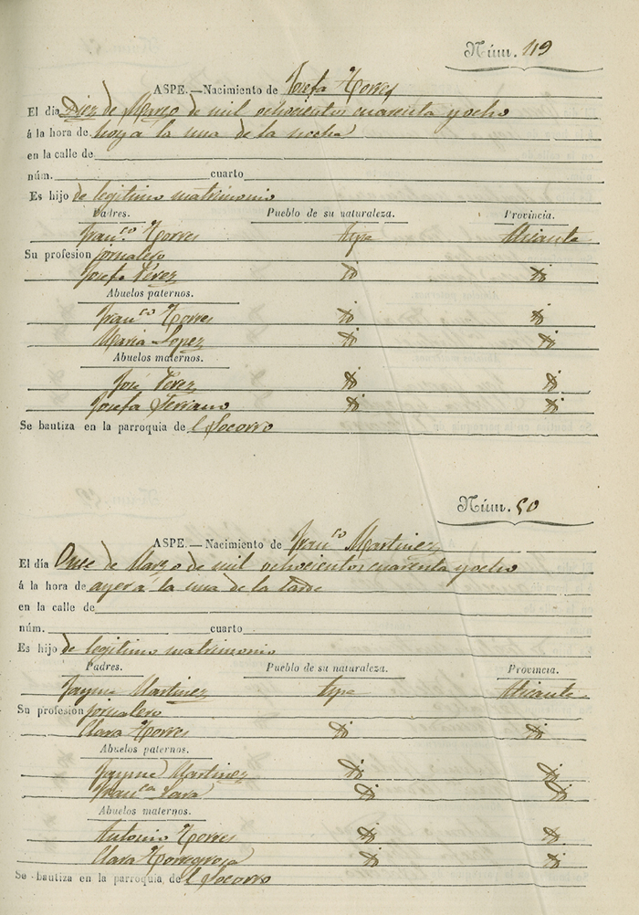 Registro civil de nacidos de la Villa de Aspe