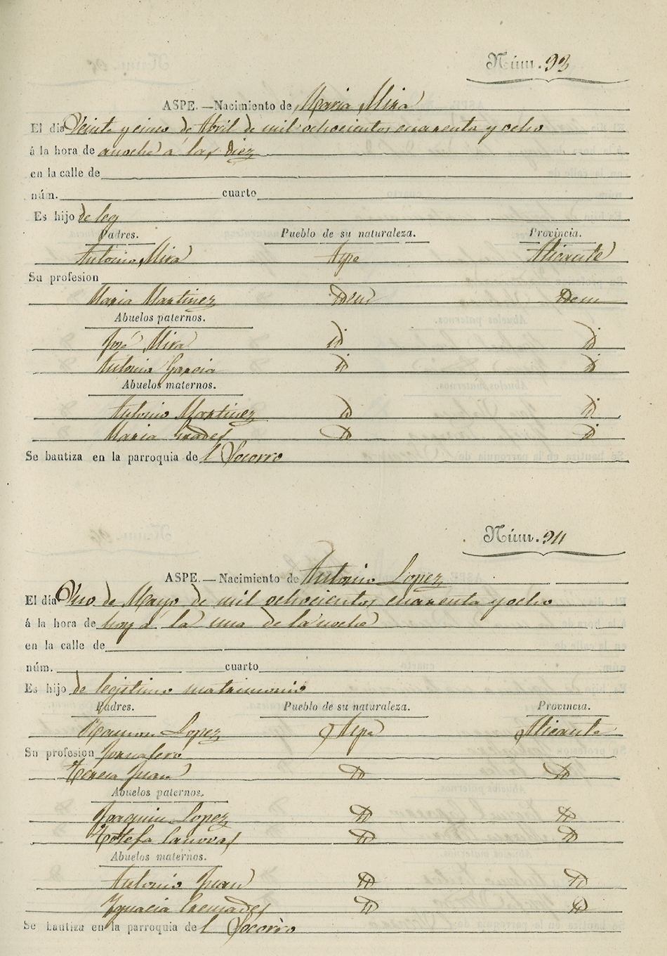 Registro civil de nacidos de la Villa de Aspe