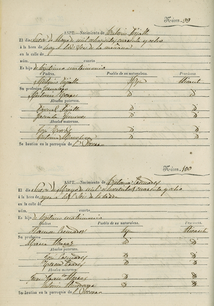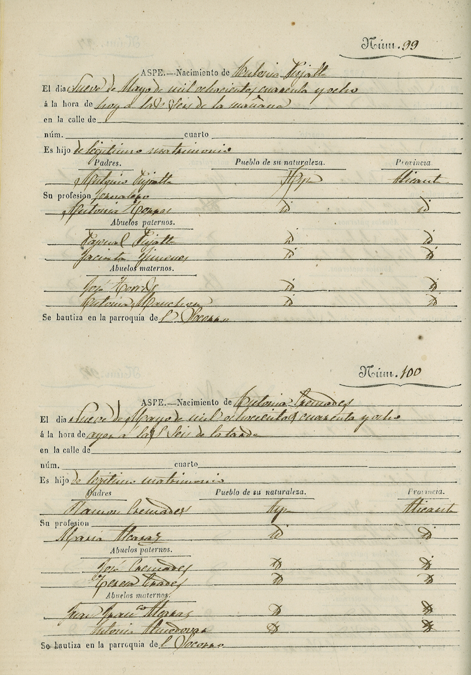 Registro civil de nacidos de la Villa de Aspe
