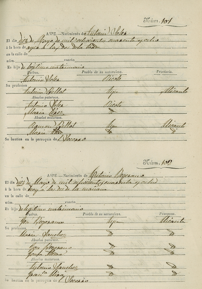 Registro civil de nacidos de la Villa de Aspe