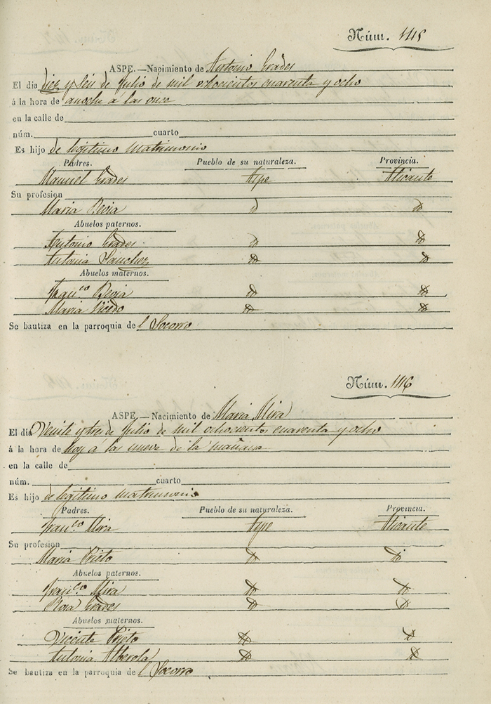Registro civil de nacidos de la Villa de Aspe
