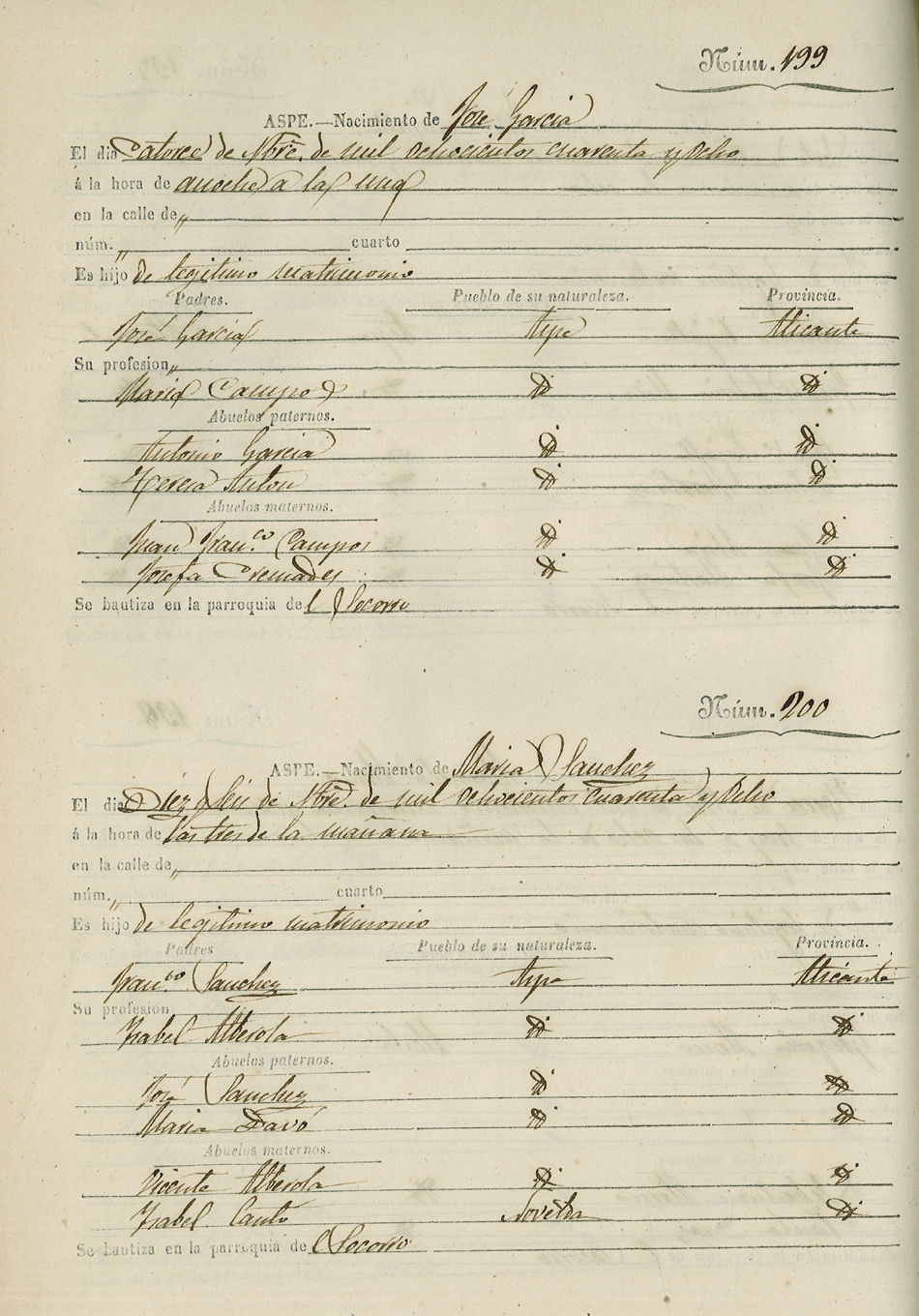 Registro civil de nacidos de la Villa de Aspe