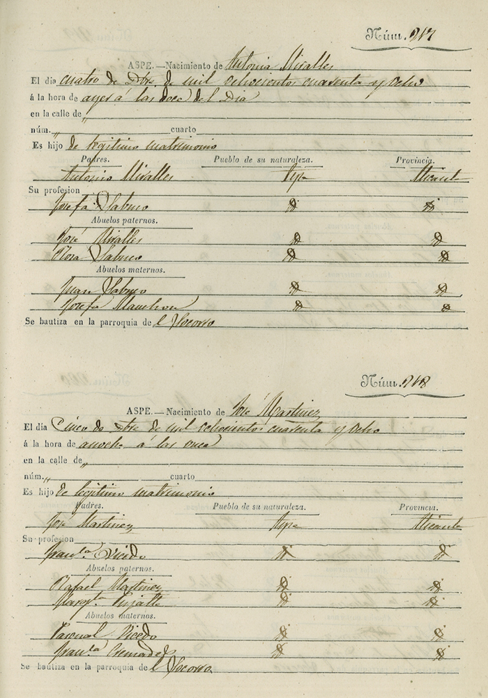 Registro civil de nacidos de la Villa de Aspe