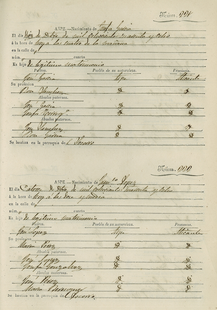 Registro civil de nacidos de la Villa de Aspe
