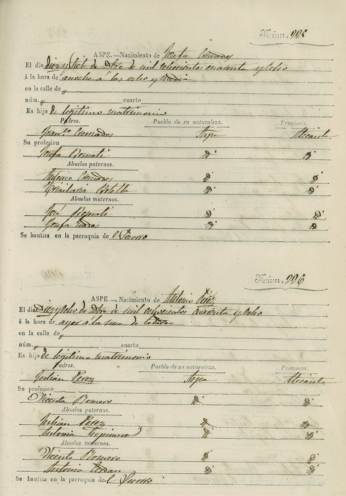 Registro civil de nacidos de la Villa de Aspe