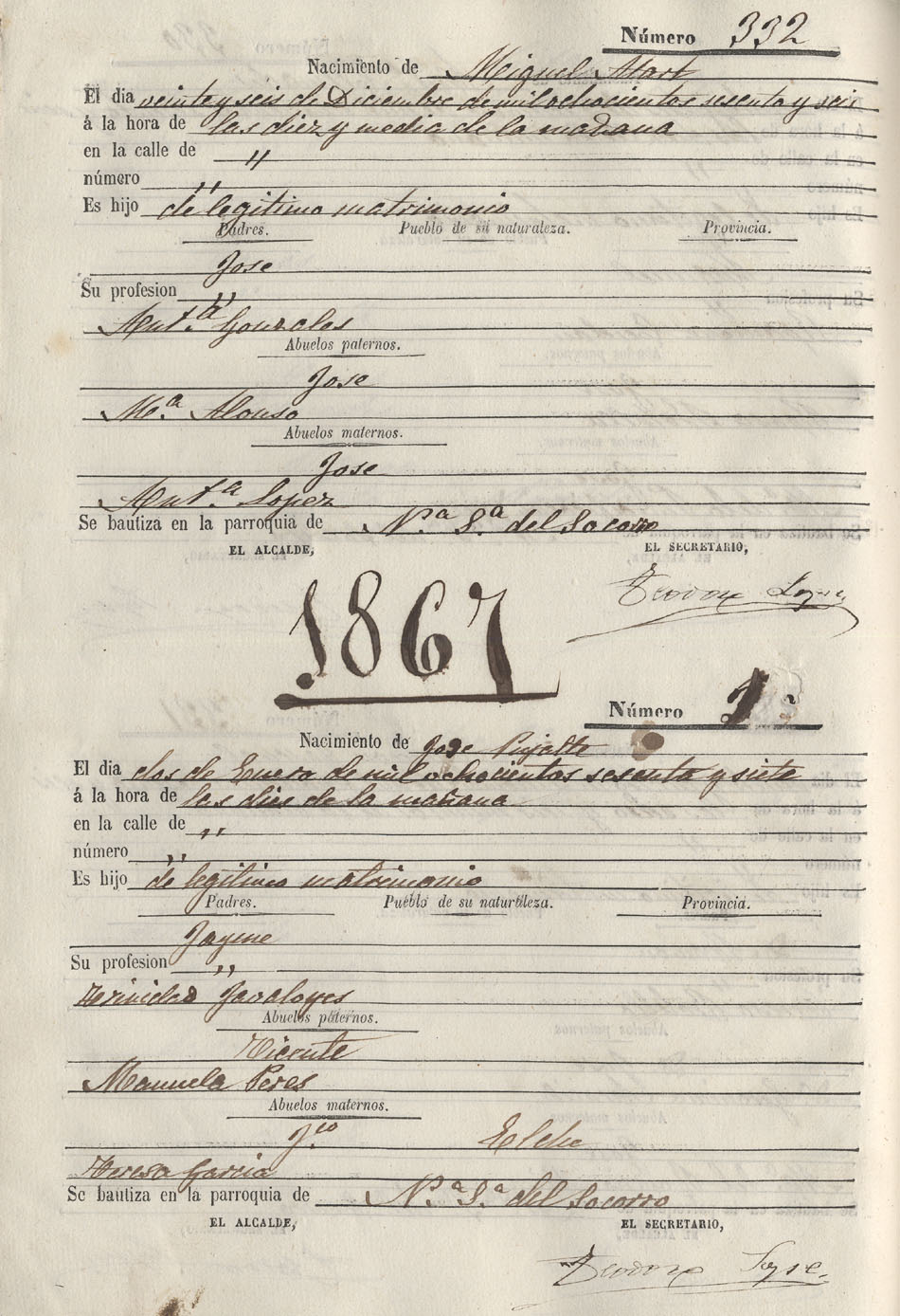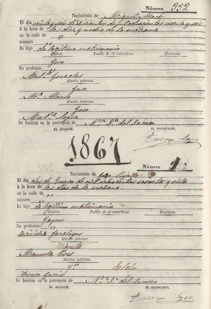 Registro civil de nacidos de la Villa de Aspe