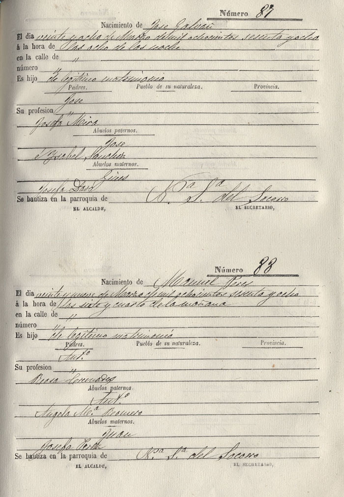 Registro civil de nacidos de la Villa de Aspe