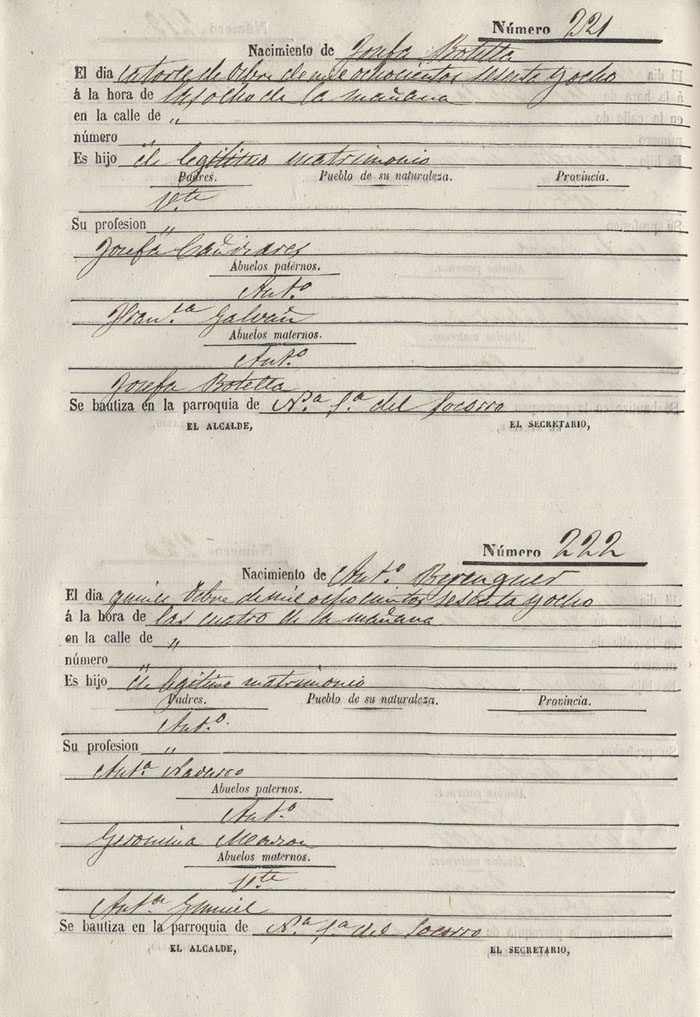 Registro civil de nacidos de la Villa de Aspe