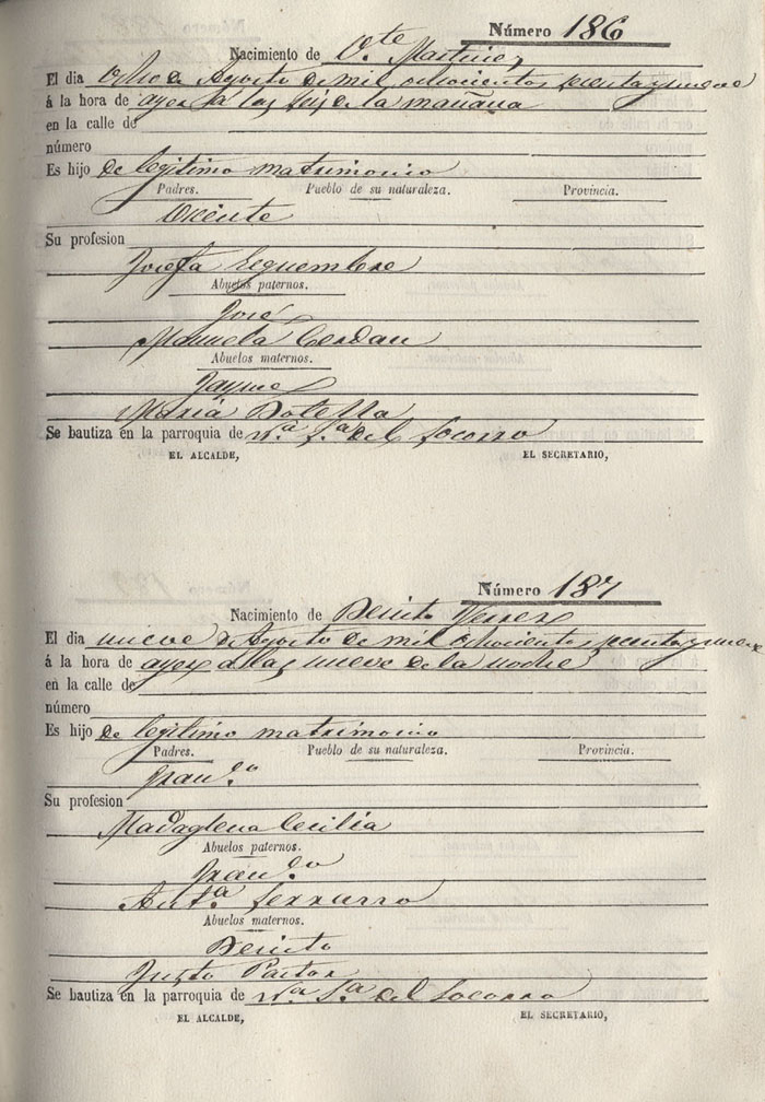 Registro civil de nacidos de la Villa de Aspe