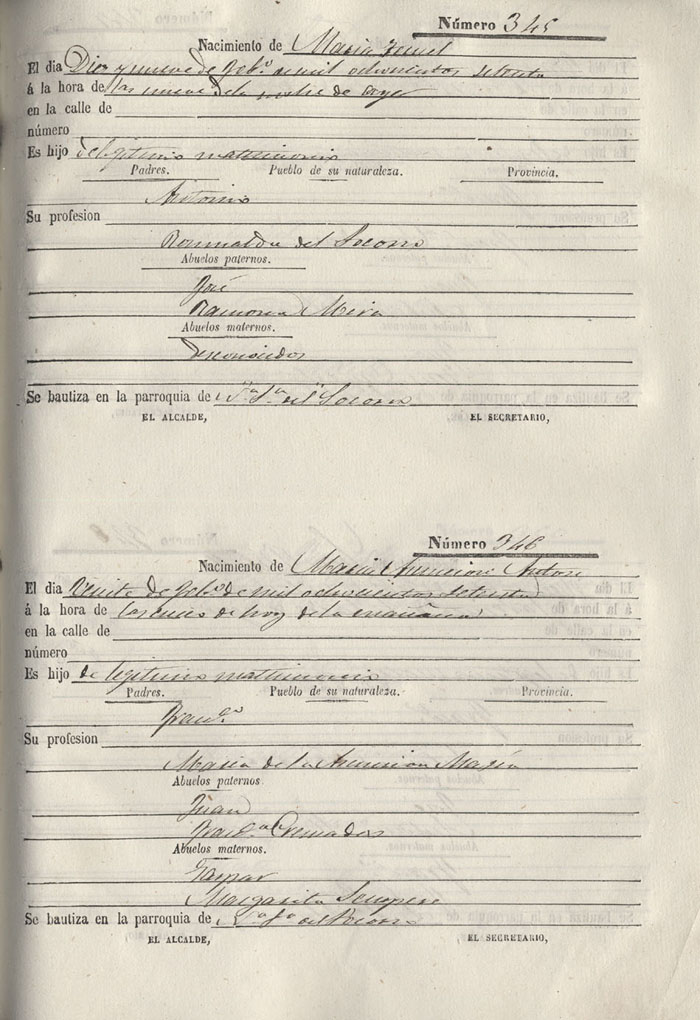 Registro civil de nacidos de la Villa de Aspe