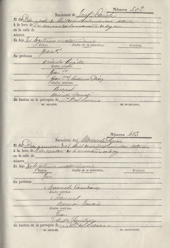 Registro civil de nacidos de la Villa de Aspe