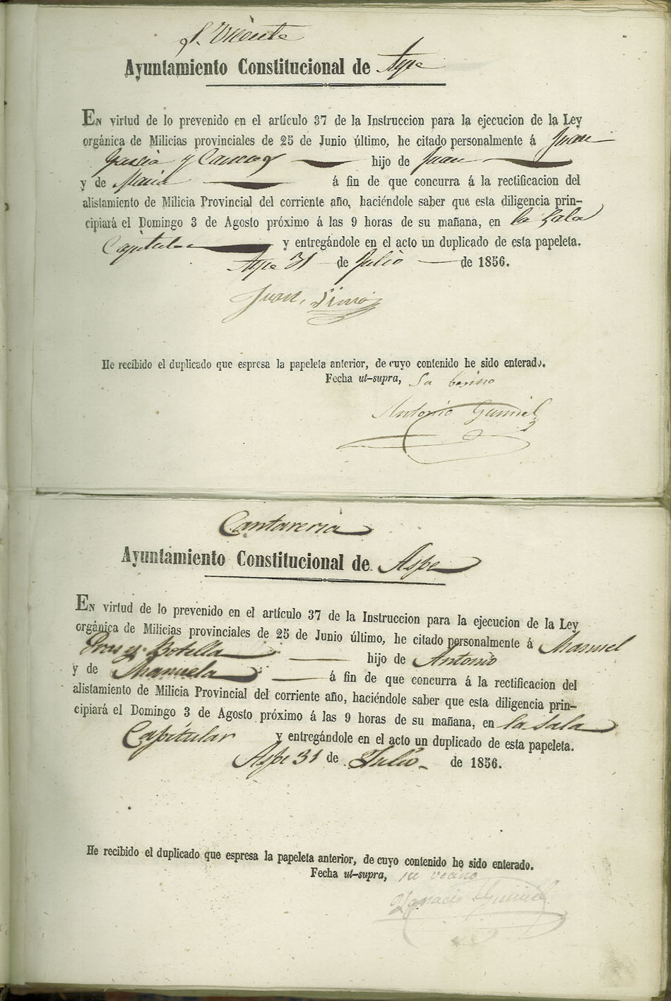 Actas de Alistamiento, 1856.