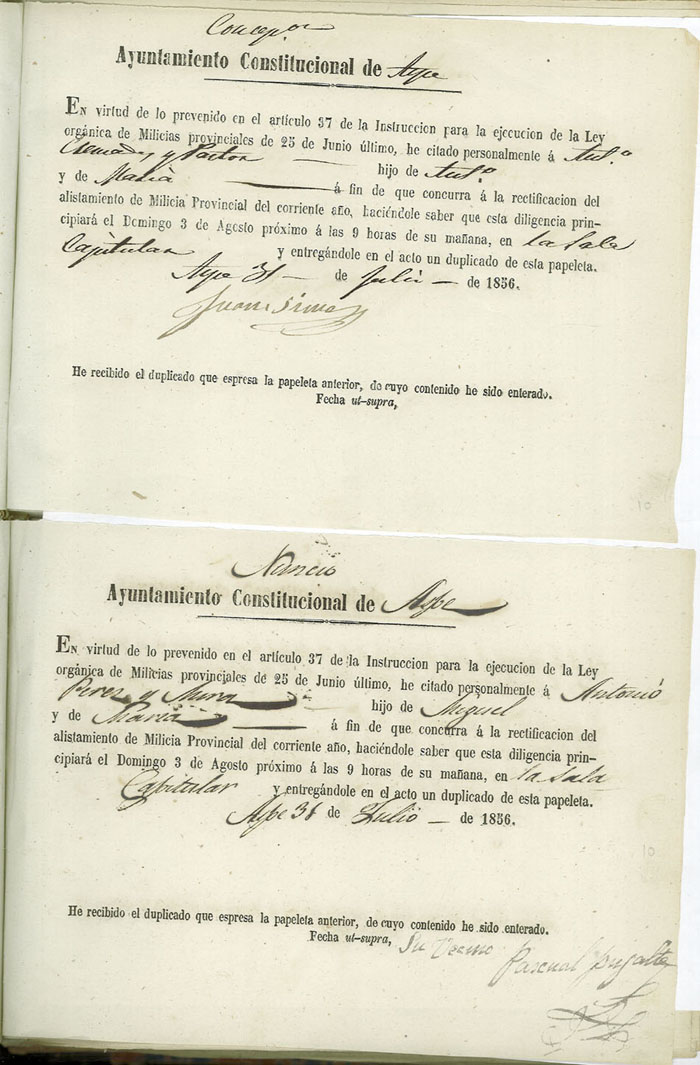 Actas de Alistamiento, 1856.