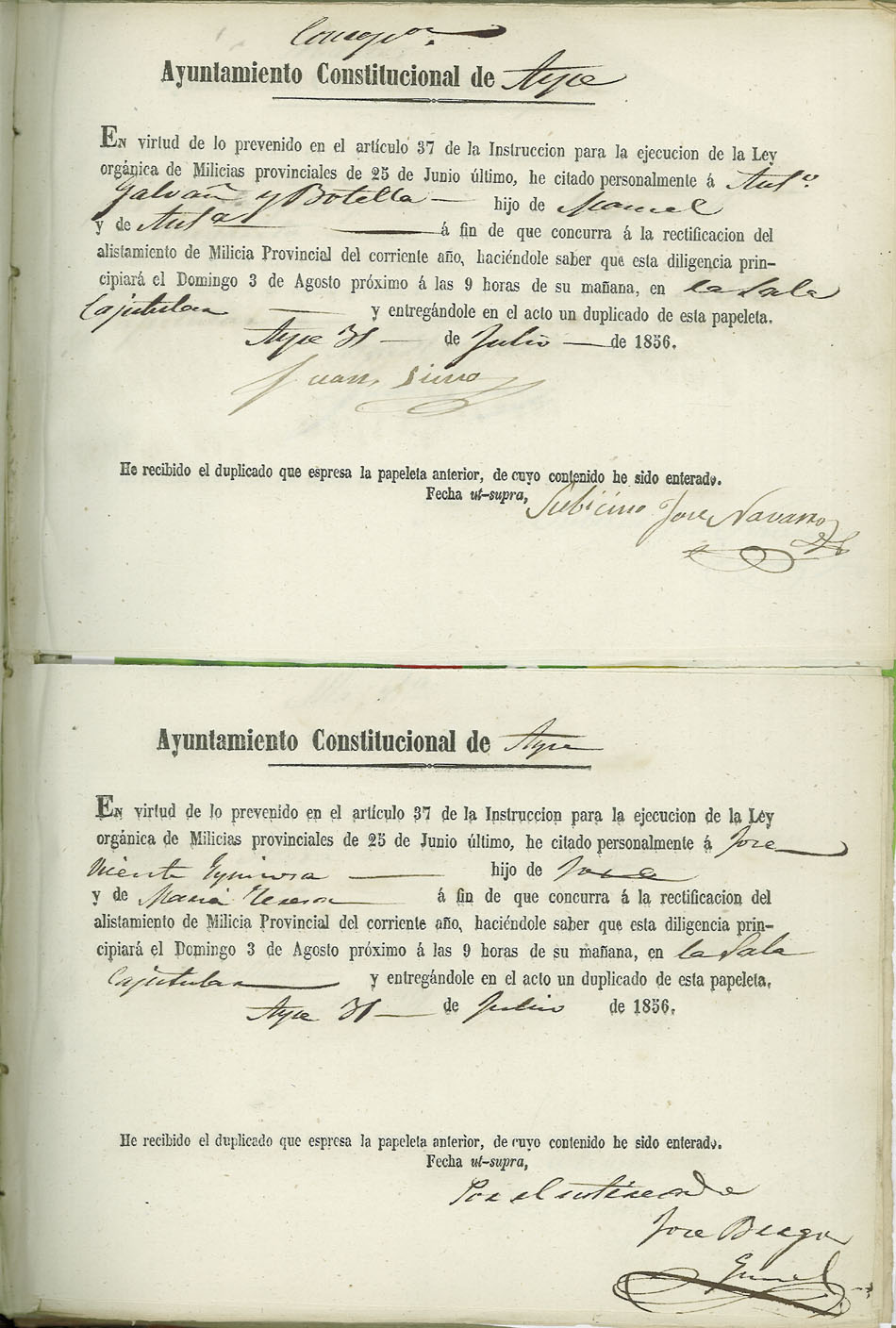 Actas de Alistamiento, 1856.