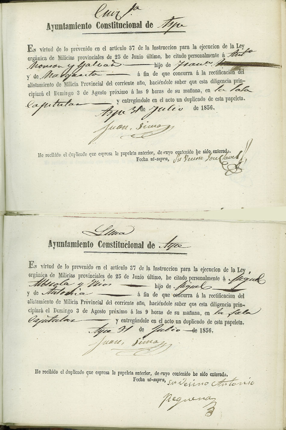 Actas de Alistamiento, 1856.