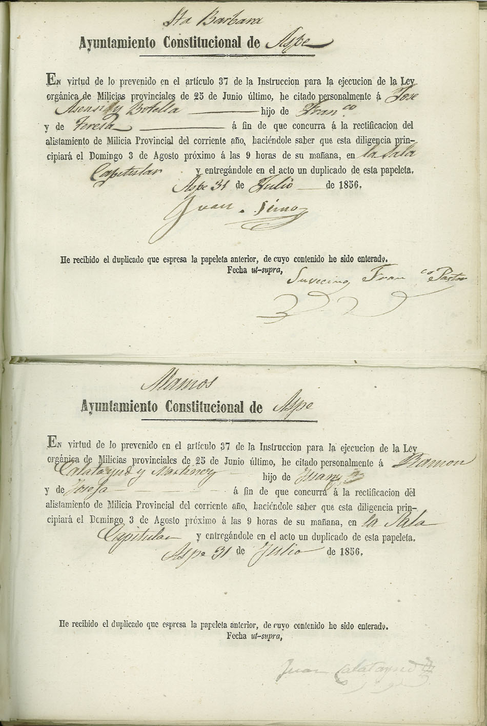Actas de Alistamiento, 1856.