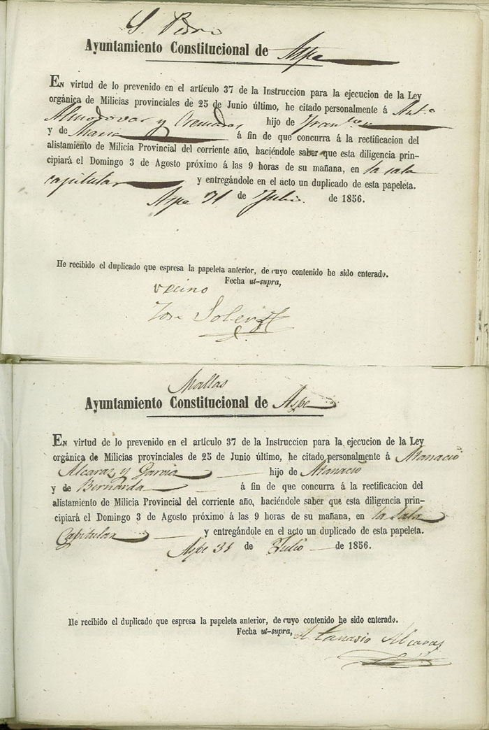Actas de Alistamiento, 1856.