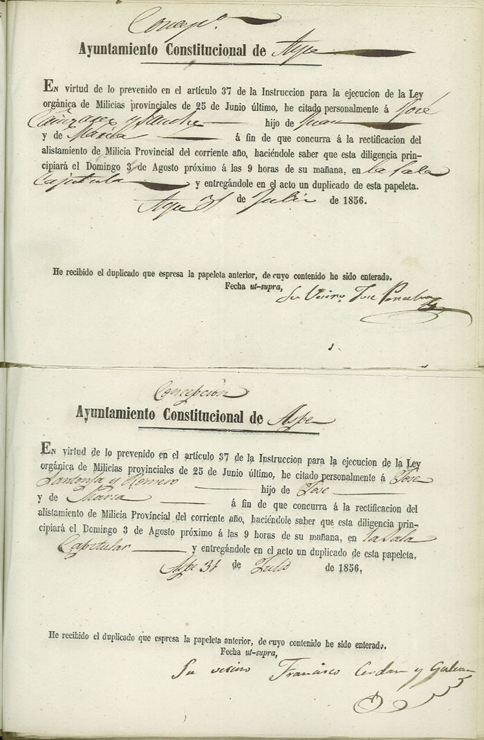 Actas de Alistamiento, 1856.