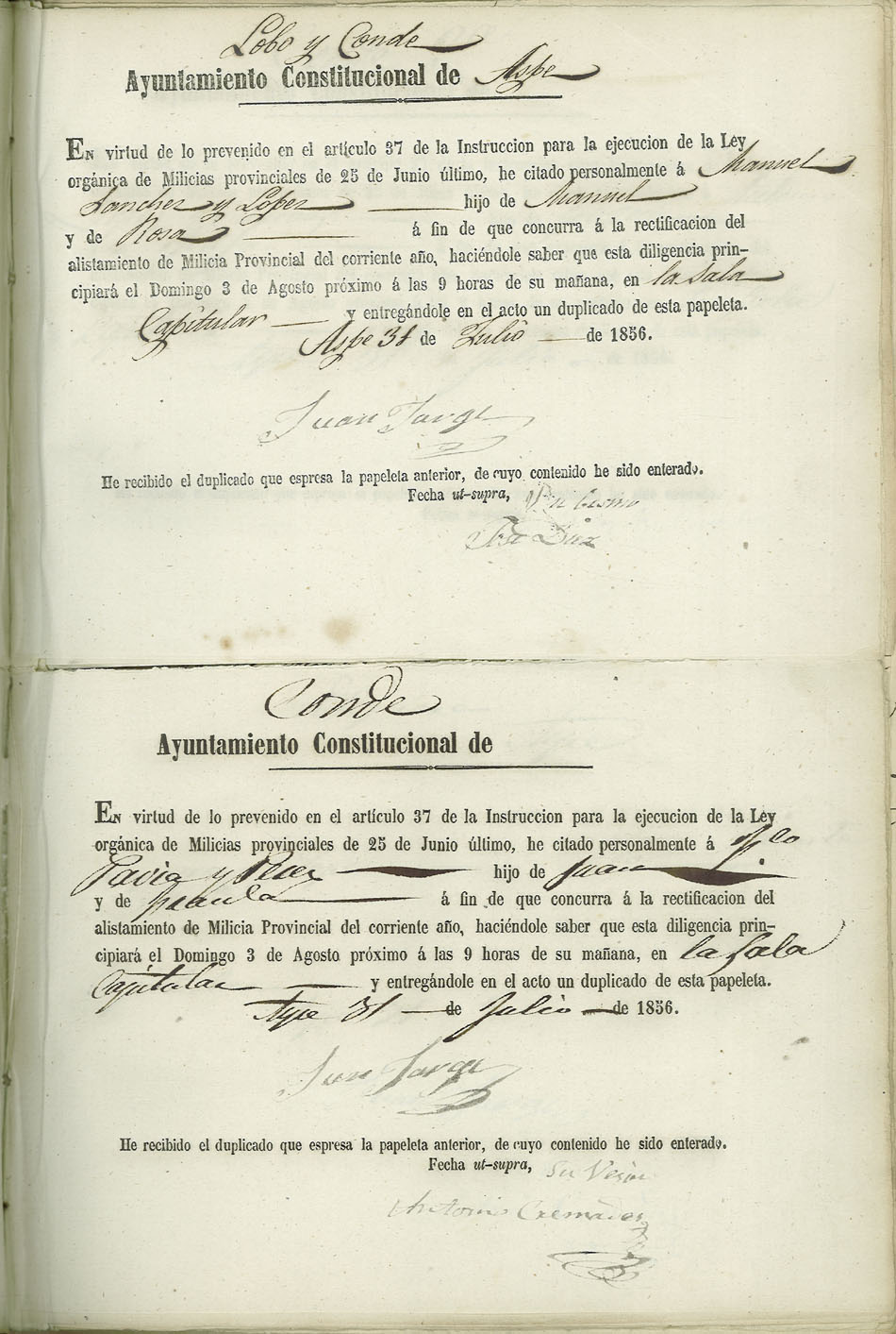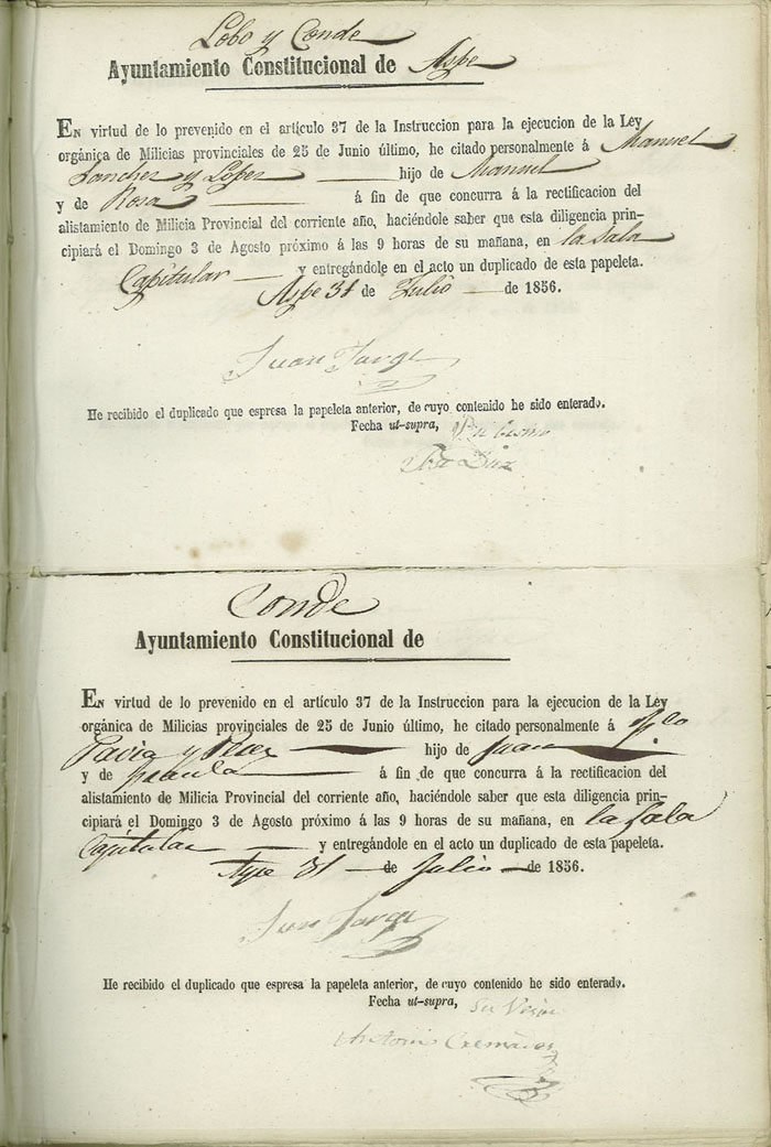 Actas de Alistamiento, 1856.