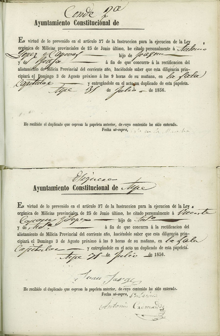 Actas de Alistamiento, 1856.