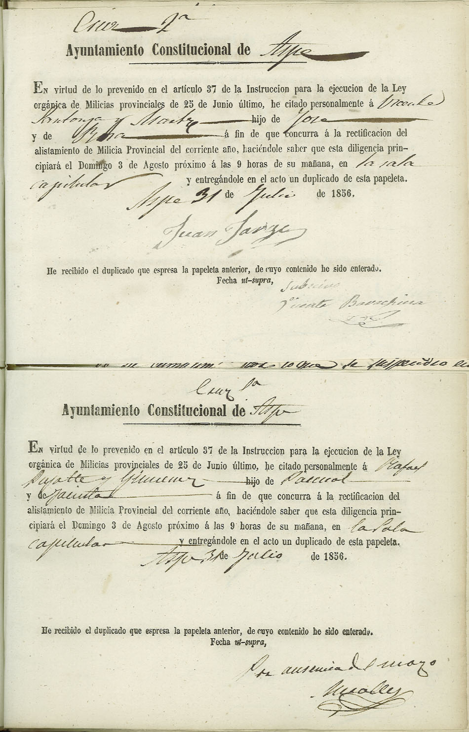 Actas de Alistamiento, 1856.