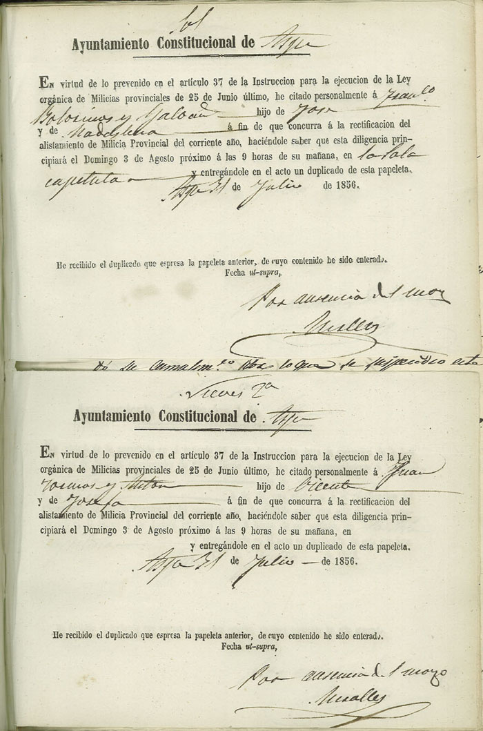 Actas de Alistamiento, 1856.