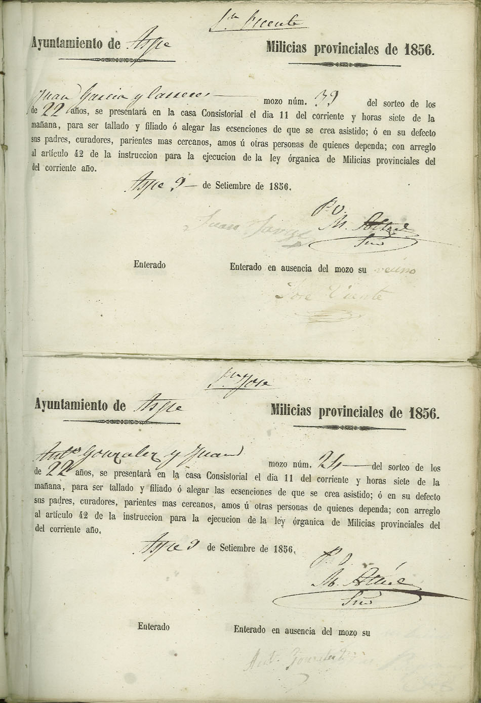 Actas de Alistamiento, 1856.