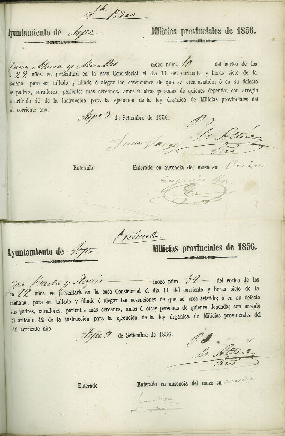 Actas de Alistamiento, 1856.