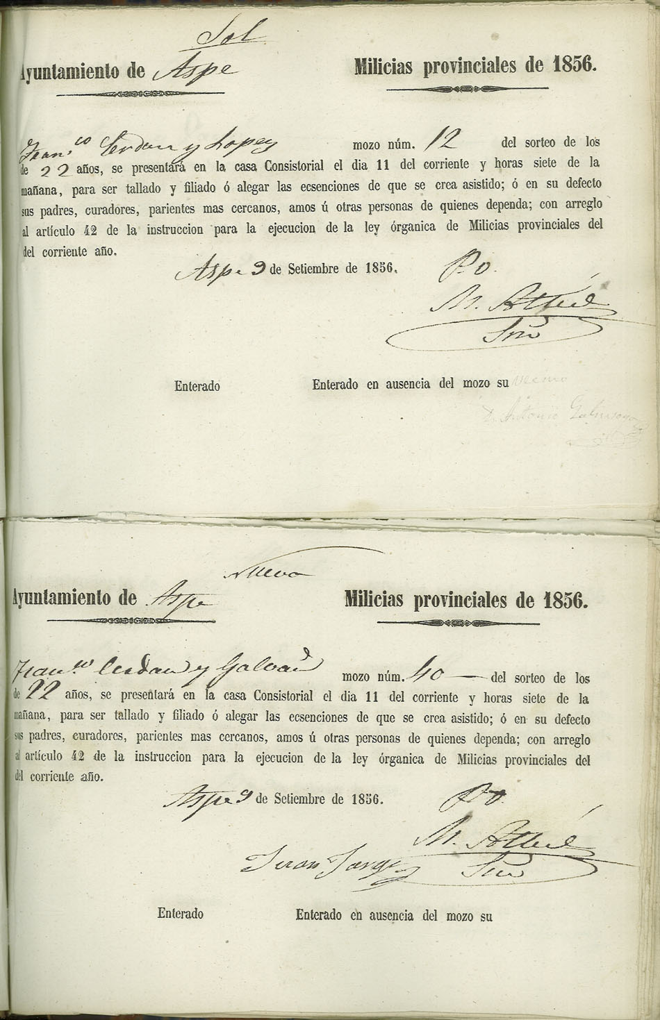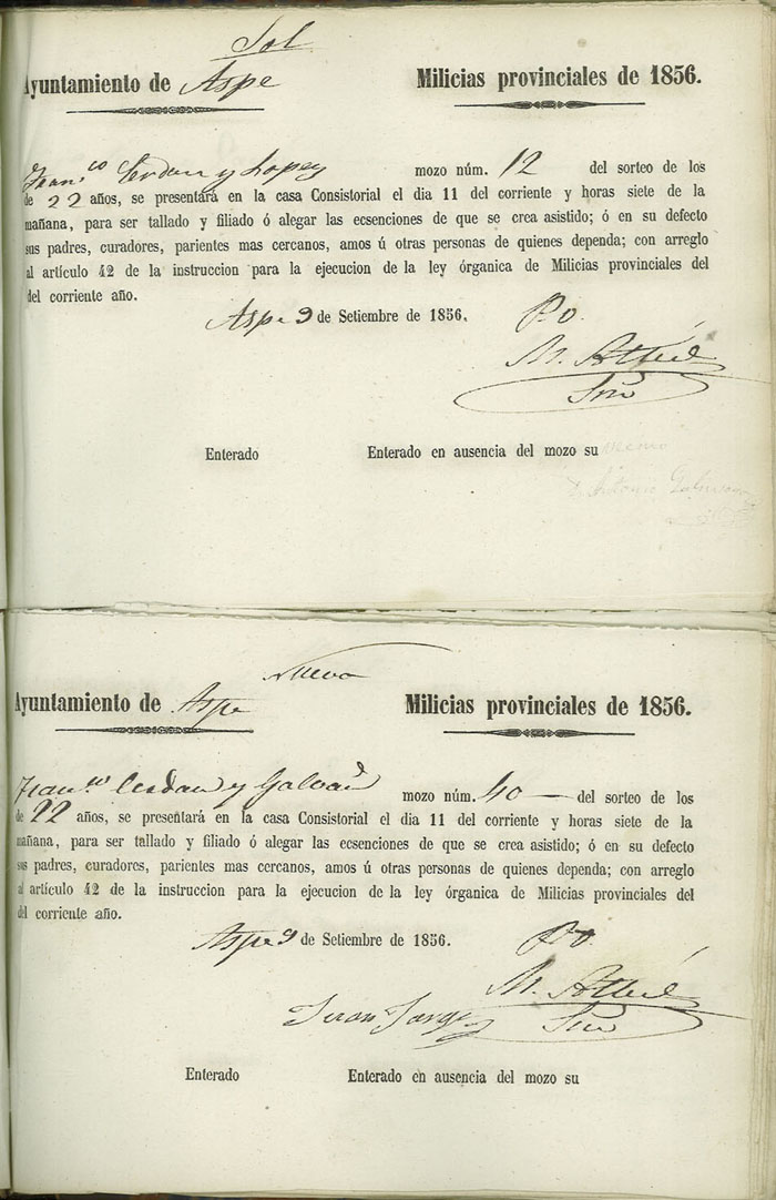 Actas de Alistamiento, 1856.