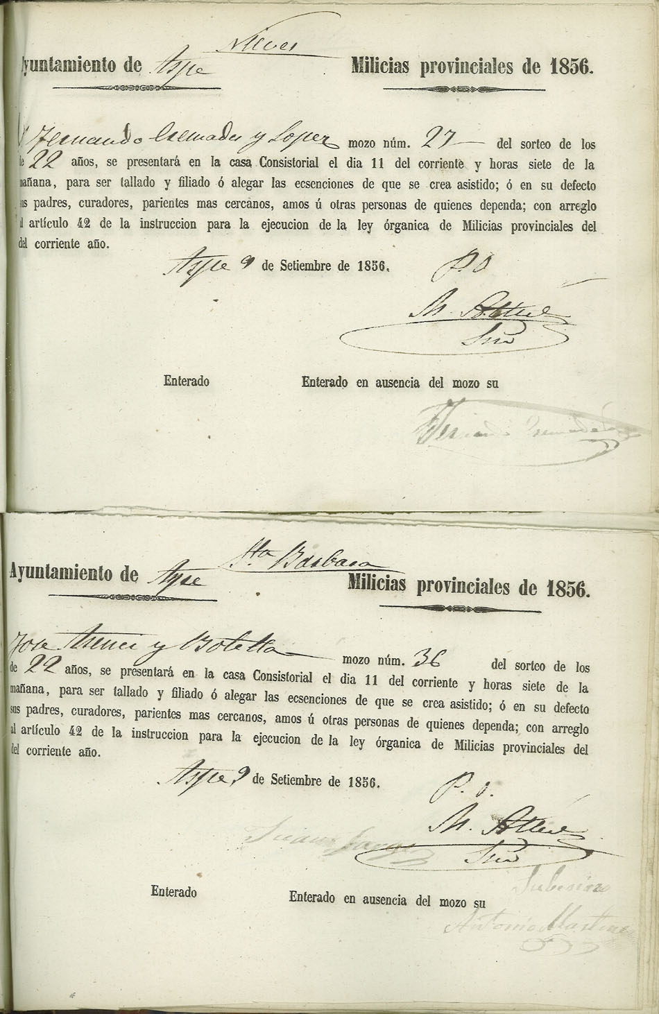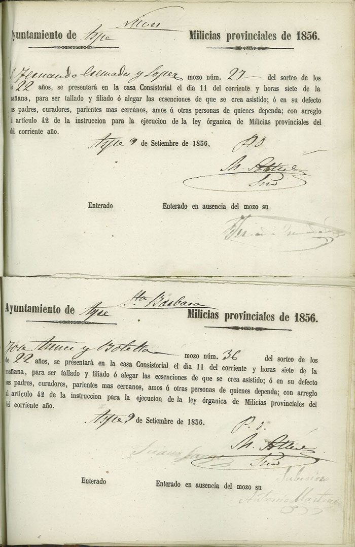 Actas de Alistamiento, 1856.