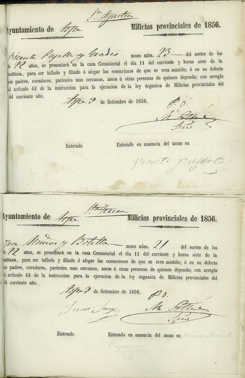 Actas de Alistamiento, 1856.