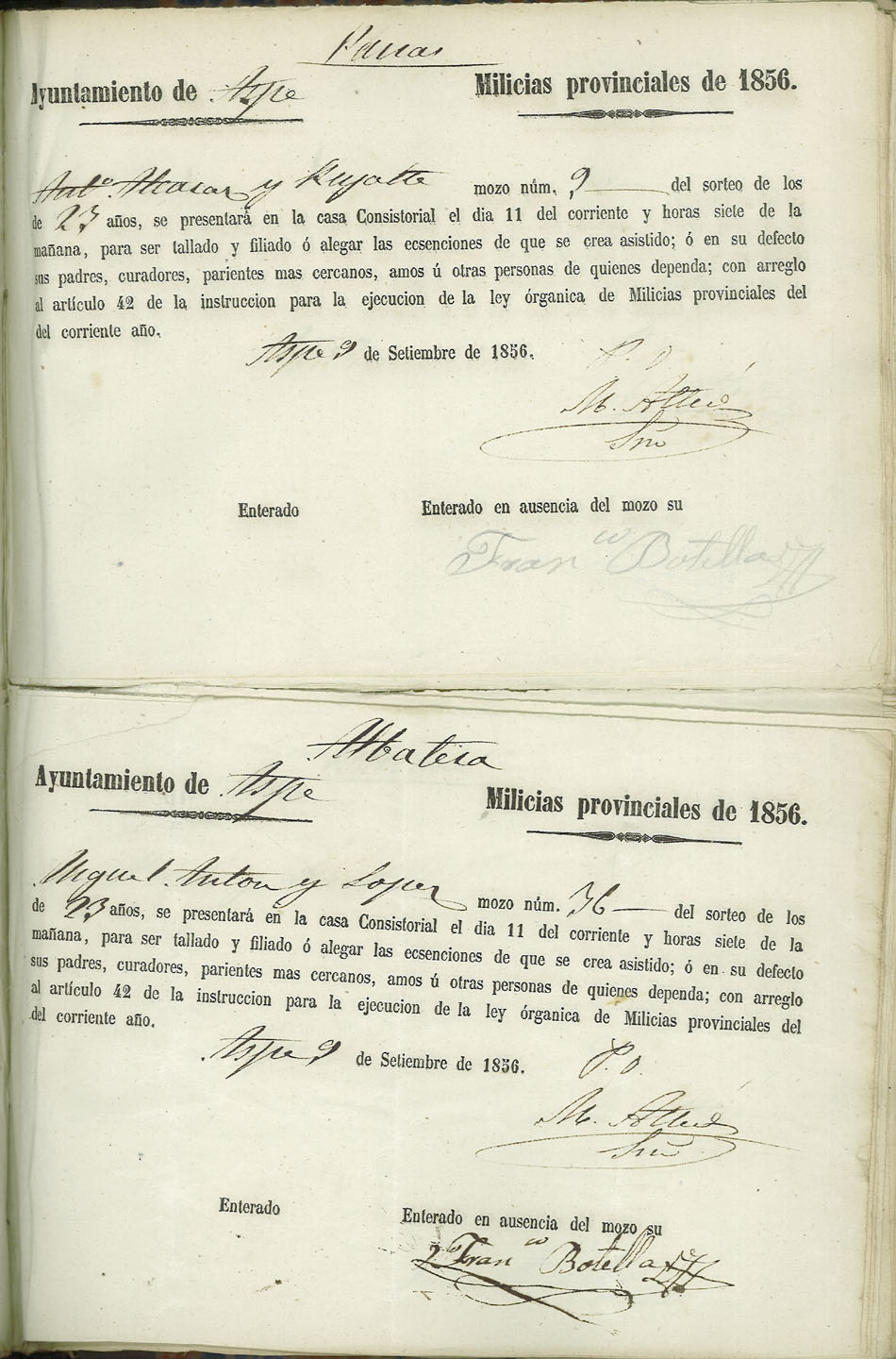 Actas de Alistamiento, 1856.