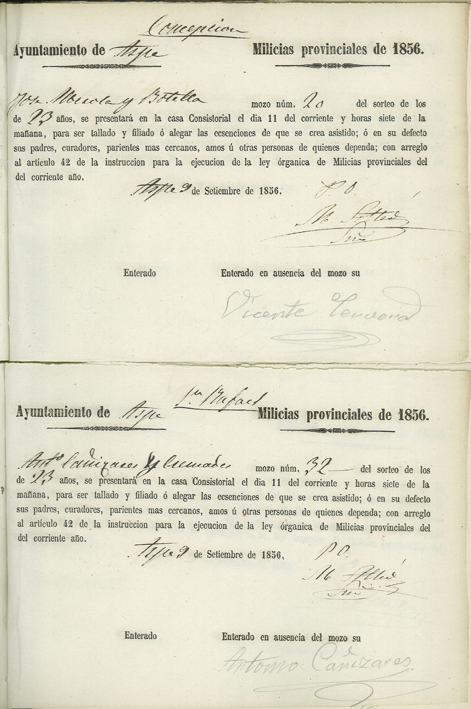 Actas de Alistamiento, 1856.