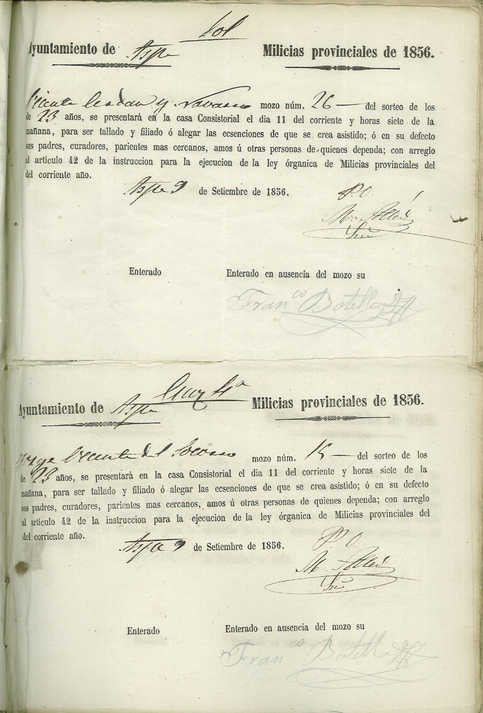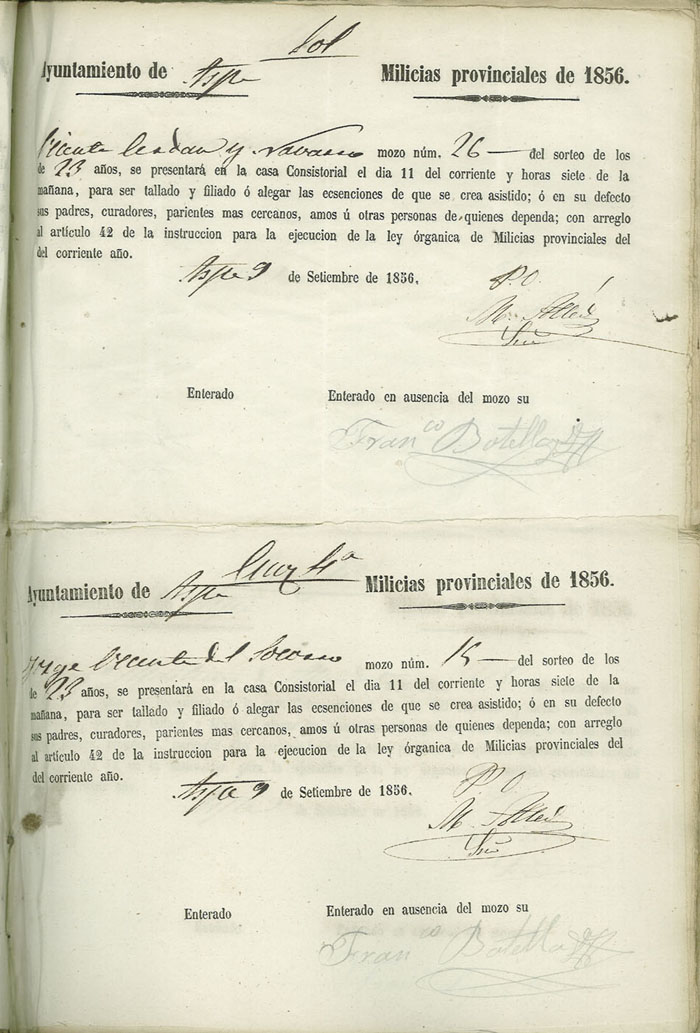 Actas de Alistamiento, 1856.