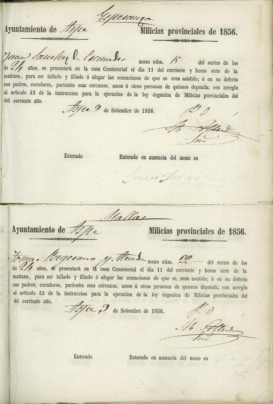 Actas de Alistamiento, 1856.