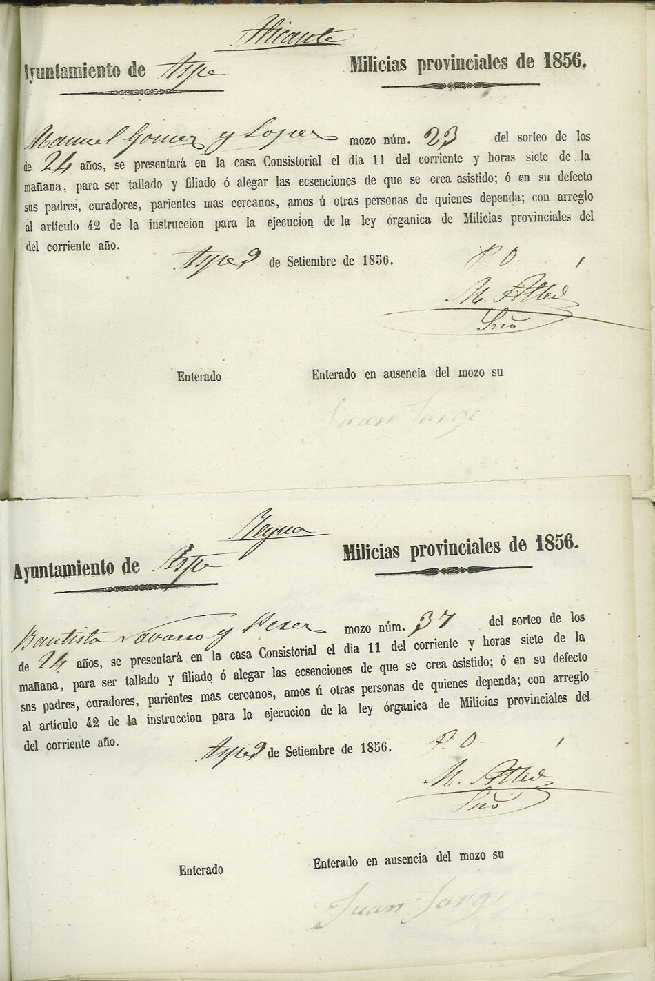 Actas de Alistamiento, 1856.