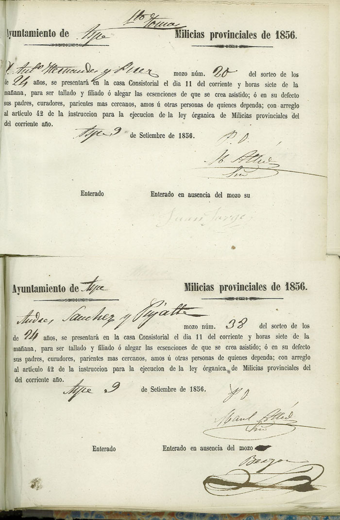 Actas de Alistamiento, 1856.