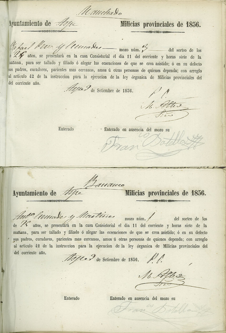 Actas de Alistamiento, 1856.