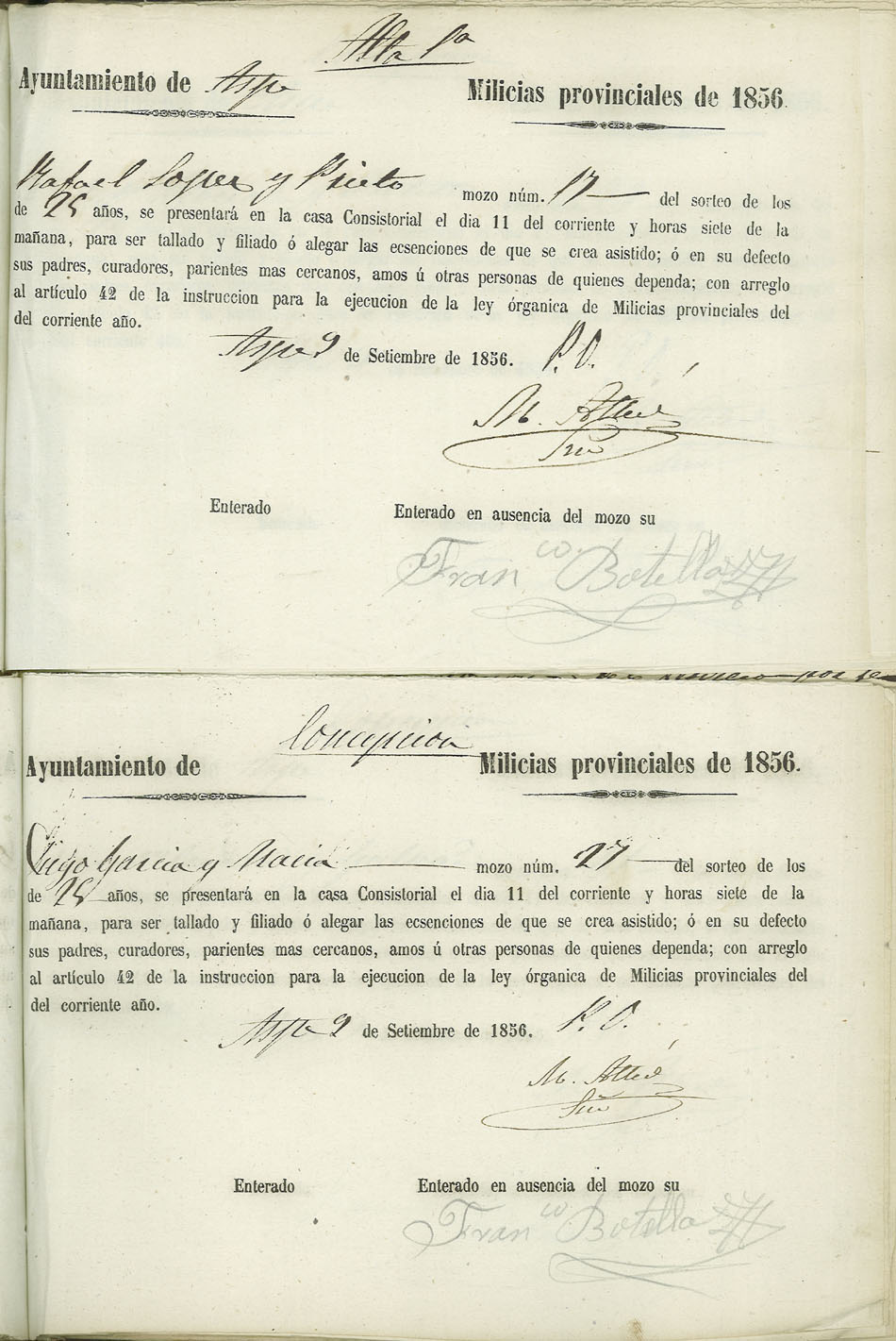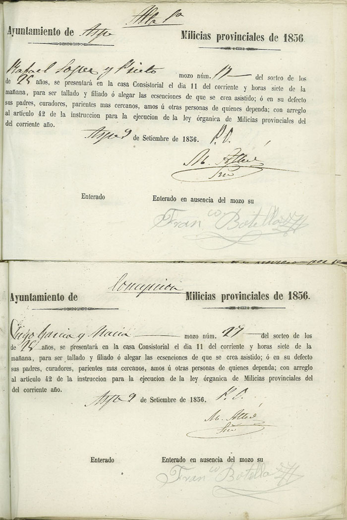 Actas de Alistamiento, 1856.