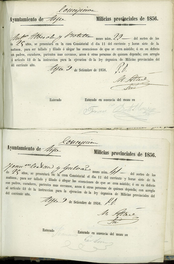 Actas de Alistamiento, 1856.