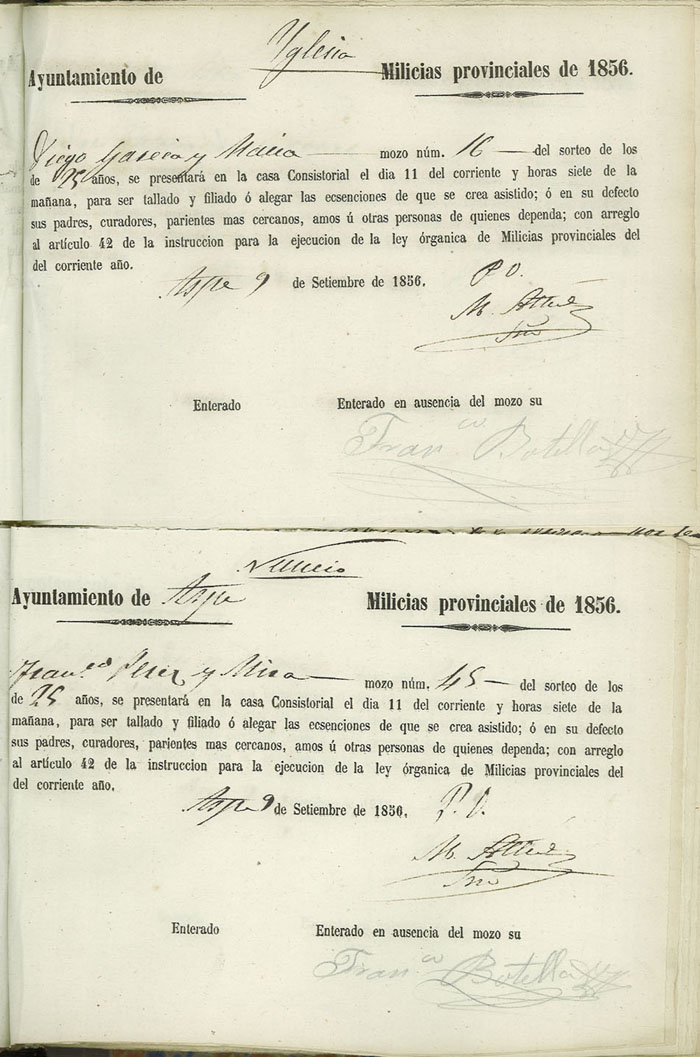 Actas de Alistamiento, 1856.