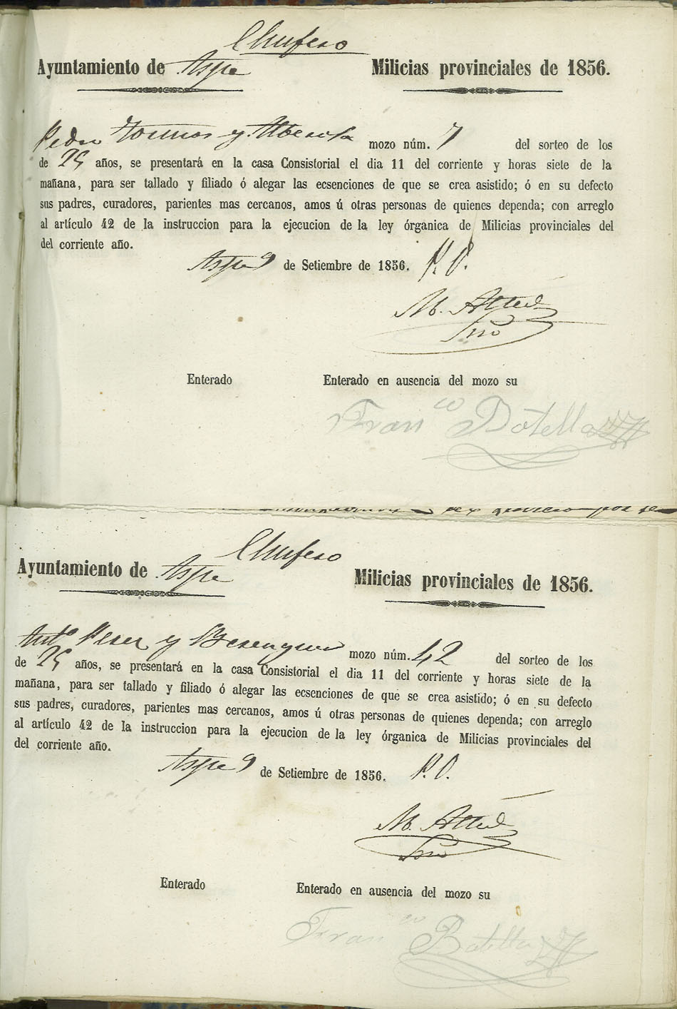 Actas de Alistamiento, 1856.